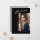 This modern elegant graduation announcement card, features design elements of modern text fused with elegant calligraphy script. The graduates vertical photo is artfully placed on the front of the card while the back of the card offers personalised text spaces for information about the graduation and future journey. Backgrounds are black on the front and silver grey on the back or easily customise these to colours of your choice. To see more items like this, visit my store here at "www.Zazzle.com/LakeViewCardCo". Thanks