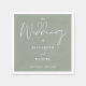 This elegant sage green wedding napkin can be personalised with your information in chic typography. Designed by Thisisnotme©