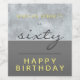 Elegant and Modern Script Sixty Grey 60th Birthday Wine label for a man who is celebrating his sixtieth birthday. The design has dark and bright grey background texture and trendy typography and script in dark grey, white and yellow colours. Personalise the label with your name. Change the text Happy birthday if you want and make your own celebration wine labels.