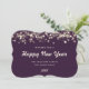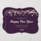 Elegant minimalist purple New Year card featuring glowing lights and stars on a dark purple background.