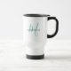 Elegant Modern Teal Script Monogram Travel Mug. An elegant Teal script monogram combined with a clean black san-serif font makes for a contemporary look.