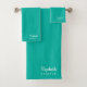 Trendy Modern Elegant Calligraphed Name Template Wash Cloth Hand Towel Bath Towel Teal Blue Green Colour Bathroom Towel Set.