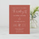 A modern typography and a trendy terracotta, clay and peach colour palette for your wedding stationery: choose this simple and elegant wedding suite. Fully customisable: you can change the background as well as the text colour as you like. Double sided, you can add the guest details ad your own QR code on the back.