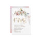 Elegant Modern Watercolor Flowers five birthday Ba Invitation