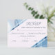 * Elegant trendy modern abstract sea blue and some pink watercolor paint wedding beach RSVP card. *