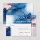 * Modern elegant trendy modern artistic abstract indigo blue, pink, watercolor paint wedding beach RSVP card. *
