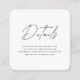 Keep your guests informed with this minimalist white wedding details card featuring a scannable QR code. Designed with clean typography on a crisp white background, this insert provides a modern and elegant way to share accommodations, directions, and extra event information. Guests can easily scan the code to access all the details online, making this the perfect addition to any modern, classic, or minimalist wedding invitation suite.