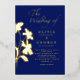 This elegant design has text and flowers with metallic foil of your choice, the gold matching perfectly with the deep dark blue.