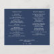 Elegant modern timeline program. Ability to select customise and change navy blue background colour to another colour matching your theme. Personalise dinner image with your own initials. Use of modern hand written calligraphy details. Images in elegant black, grey and taupe tones. Ability to customise information on the back to suit your needs.