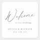 Modern welcome script minimalist design in charcoal black and white, simple and elegant. great personalised wedding favour stickers.