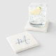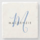 Elegant Modern White Blue Script Monogram Stone Coaster