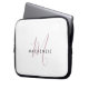 Elegant Modern White Blush Pink Script Monogram laptop sleeve. An elegant Blush Pink script monogram combined with a clean black san-serif font makes for a contemporary look.