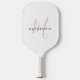 Elegant Modern White Blush Pink Script Monogram Pickleball Paddle