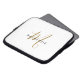 Elegant Modern White Gold Script Monogram laptop sleeve. An elegant gold script monogram combined with a clean black san-serif font makes for a contemporary look.