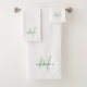 Elegant Modern White Green Script Monogram Bath Towel Set