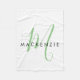 Elegant Modern White Green Script Monogram Fleece Blanket
