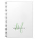 Elegant Modern White Green Script Monogram notebook. An elegant green script monogram combined with a clean black san-serif font makes for a contemporary look.