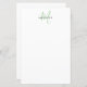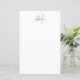 Elegant Modern White Green Script Monogram Stationery Paper. An elegant green script monogram combined with a clean black san-serif font makes for a contemporary look.