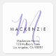 Elegant Modern White Lavender Script Monogram Return Address Label. An elegant lavender script monogram combined with a clean black san-serif font makes for a contemporary look. Note: For some initials, the descender (lower part) may overlap the address, but shouldn't interfere with legibility.