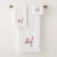 Elegant Modern White Red Script Monogram Bath Towel Set