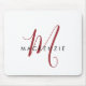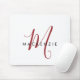 Elegant Modern White Red Script Monogram Mouse Pad. An elegant red script monogram combined with a clean black san-serif font makes for a contemporary look.