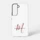 Elegant Modern White Red Script Monogram Samsung Galaxy S22 Case