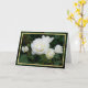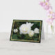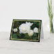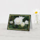 Elegant greeting card with a photo of a beautiful white rose in bloom surrounded by four white roses in bud. With a stylish, classy golden frame.