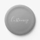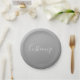 Elegant Modern White Script Writing Grey Gradient Paper Plate