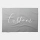 Elegant Modern White Script Writing Grey Gradient Tea Towel
