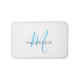 Elegant Modern White Sky Blue Script Monogram Bath Mat