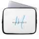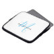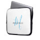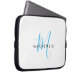 Elegant Modern White Sky Blue Script Monogram laptop sleeve. An elegant sky blue script monogram combined with a clean black san-serif font makes for a contemporary look.