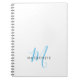 Elegant Modern White Sky Blue Script Monogram Notebook