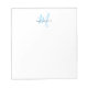 Elegant Modern White Sky Blue Script Monogram Notepad