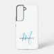 Elegant Modern White Sky Blue Script Monogram Samsung Galaxy S22 Case