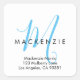 Elegant Modern White Sky Blue Script Monogram Return Address Label. An elegant sky blue script monogram combined with a clean black san-serif font makes for a contemporary look. Note: For some initials, the descender (lower part) may overlap the address, but shouldn't interfere with legibility.
