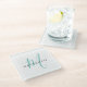 Elegant Modern White Teal Script Monogram Glass Coaster