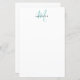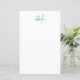 Elegant Modern White Teal Script Monogram Stationery Paper. An elegant teal script monogram combined with a clean black san-serif font makes for a contemporary look.