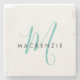 Elegant Modern White Teal Script Monogram Stone Coaster