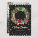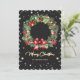 Elegant Modern Wreath Black Photo Merry Christmas Holiday Card