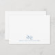 This elegant monogram features 3 initials: first name, last name in a larger decorative typography in the centre, and middle initial last. A formal elegant style blue monogram notecard.