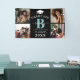 This elegant monogram graduation banner features a black background with a 4 photo collage template of the graduate, a white graduation cap , class year, place of study and initial and name in handwritten calligraphy script. Colour of initial can be customised by clicking on 'Customise Further'.