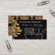 Elegant Monogram Black and Gold Damask Business Ca Card