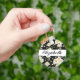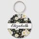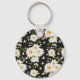 Elegant Monogram Black and White Daisy Pattern Key Ring