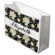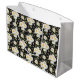 Elegant Monogram Black and White Daisy Pattern Large Gift Bag
