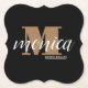 Elegant Monogram Black Gold Script minimal Paper Coaster