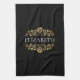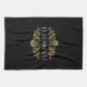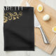 An elegant and chic black and gold flourish monogram kitchen towel. Add your name between the gold floral flourish on the front. Designed for you by Blackberry Boulevard.