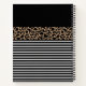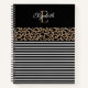 An elegant black leopard animal print and black and white striped monogram notebook for your office or back to school. Add your name and initial between on the front. Designed for you by Blackberry Boulevard.