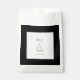 This design features the bride's and groom's names as the main focus of the design with a black, grey and white border. Personalised names using script font typography creates a perfect fusion of modern and elegance. A simple custom minimalist wedding favour bag design with modern, black, white and grey monogram. Matching wedding invitations and other stationery items are also available.