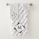 Elegant Monogram BLESS THE LORD Bath Towel Set. Elegant Christian quote in decorative script typography that reads BLESS THE LORD, O MY SOUL, based on Psalm 103. Includes MONOGRAM in bottom right hand corner in a double square. Black text on white background. Also available in black.