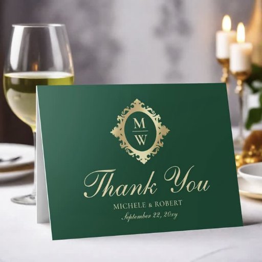Elegant Monogram Classic Luxe Emerald Green Gold